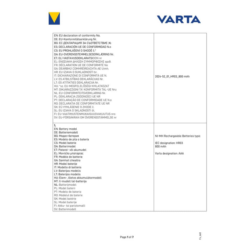 Die VARTA Accu Batterien Micro AAA sind eine gute Energielösung und für alle Standardanwendungen mit gleichförmigem Energiebedarf geeignet. Nickel Hydrid (Ni-MH)-Akkus mit Ready2Use Technologie. Die Akkus sind direkt einsatzbereit, ohne vorheriges Aufladen. Einmal geladen können diese Akkus nach einem Jahr Lagerung noch 80% ihrer ursprünglichen Kapazität aufweisen. Für alle Ladegeräte geeignet. Bis zu 5.000 Stunden in Funkmäusen.