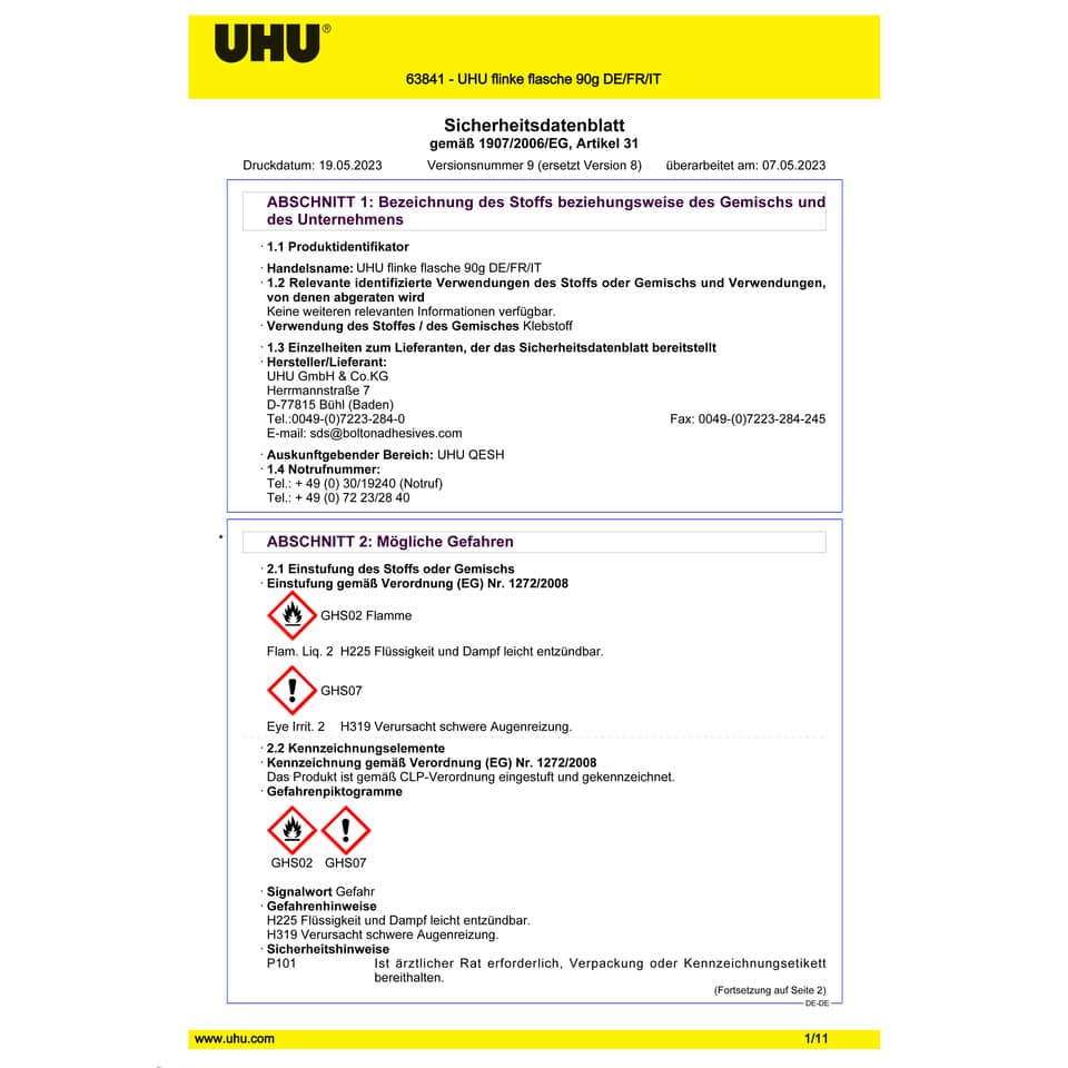 verantwortlicher CLP-Hersteller: UHU GmbH & Co.KG Herrmannstraße 7 D-77815 Bühl (Baden)