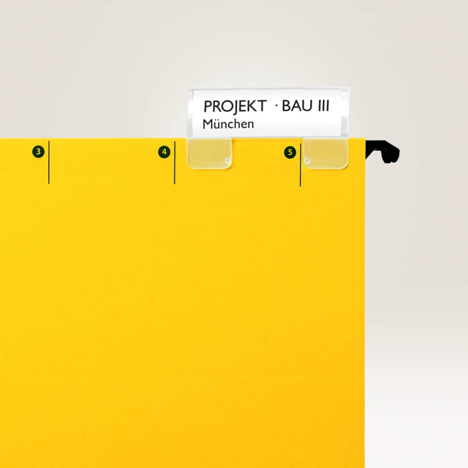 Sichtreiter-Etiketten. Anwendung: Ordnen, Organisieren. Klebstoff: ablösbar. Drucker: Inkjet, Laser s/w, Farblaser. Form: rechteckig mit abgerundeten Ecken. Chlorfrei gebleicht, FSC®. Größe: A4. Blatt/Packung: 25. Pro Bogen: 64 Etiketten.