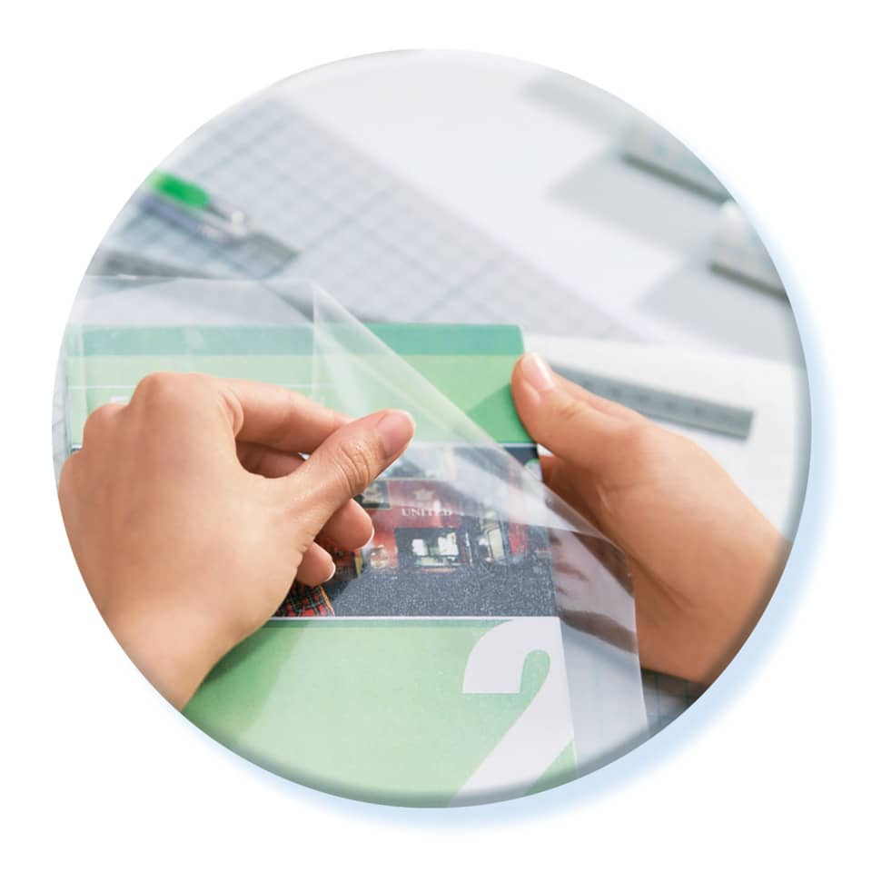 Die Gitternetzlinien auf dem Trägerpapier hilft bei der exakten Positionierung und dem sparsamen Zuschneiden. Die Folie ist durch ihre 40cm Breite ideal für Bücher im Standard DIN A4 Format geeignet, sowie für Formate bis zu einer Höhe von ca. 38cm.