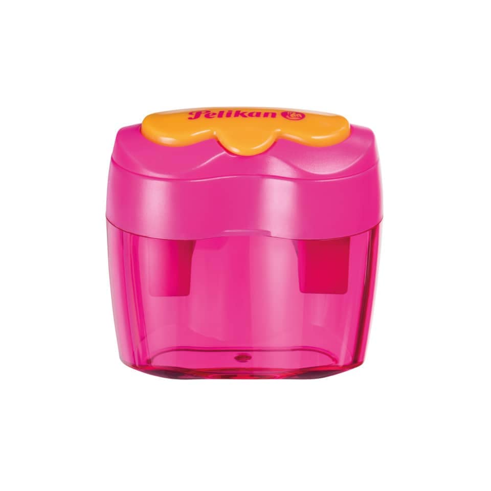 Der Dosenspitzer Doppel Flower von Pelikan hat 2 Fächer für Stifte bis 9,5mm Durchmesser. Der Auffangbehälter lässt sich einfach entnehmen und entleeren, zudem besitzt er einen Deckel, damit nichts vom Abgespitzten rausfällt.