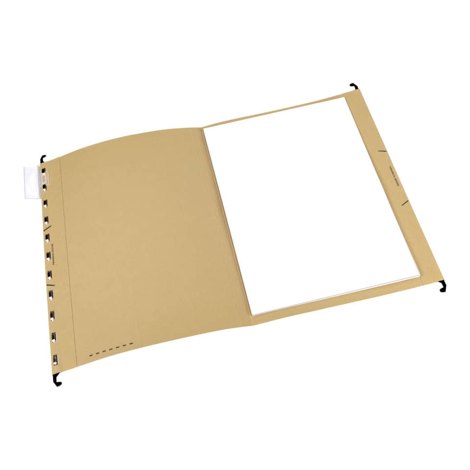 Die Hängemappe ELBA vertic ULTIMATE sind die perfekte Aufbewahrungsmöglichkeit für Ihre Akten und Unterlagen. Sie sind sehr stabil und langlebig, durch den hier verwendeten 240g/qm extrastarken Recycelten Karton. Die stabilen, 34,8cm langen Metall-Hängeschienen gewährleisten, dass der Ablagehelfer auch mit vielen Papieren beladen sicher hängt. Die Hängemappen besitzen verschieb- und einrastbaren Vollsichtreiter und Beschriftungsschildchen.