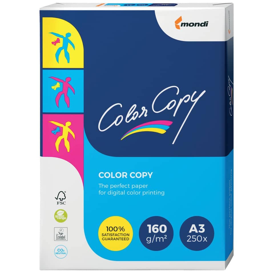 Weißes TOP-Papier für Vollfarbkopien, Farblaserdrucke und DTP. Durch spezielle Oberflächenbehandlung werden Drucke und Kopien besonders farbecht und brillant wiedergegeben. Höheres Gewicht und Volumen, höhere Glätte und Steifigkeit sowie hochwertige Rohstoffe sorgen für beste Tonerhaftung und weitestgehende Geräteschonung. Von allen Geräteherstellern empfohlen. FSC-zertifiziert.