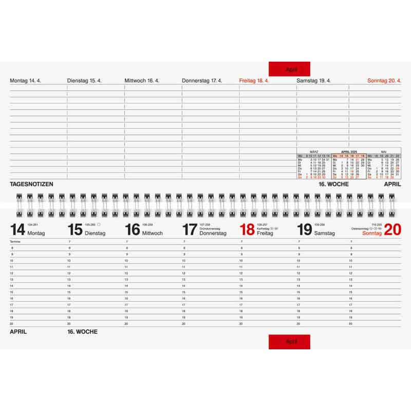 | Kalenderaufteilung: | 1 Woche = 2 Seiten |