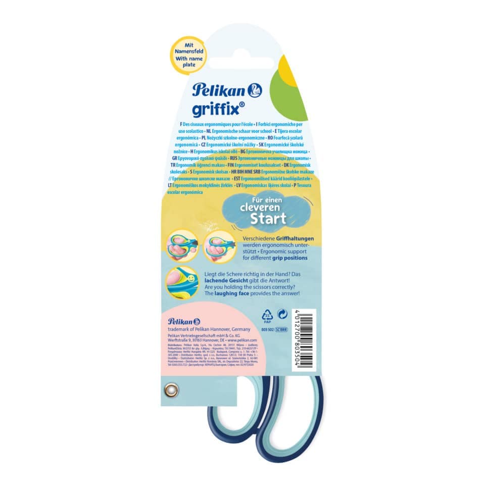 Die Pelikan Schere ist mit ihrer runden Klinge ideal geeignet für jüngere Kinder, die schon sehr gut schneiden können. Die Schulschere besteht aus einer Titan-Nitrid-Beschichtung. Mit Namensfeld zur individuellen Beschriftung.
