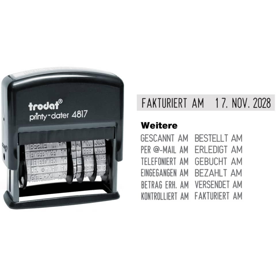 Trodat 4817 – Stempel mit Datum und Wortband, selbstfärbend – 12 Texte